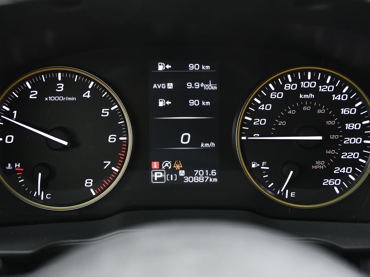 instruments -comprend : indicateur de vitesse, odomètre, température du liquide de refroidissement du moteur, tachymètre, compteur journalier et ordinateur de voyage