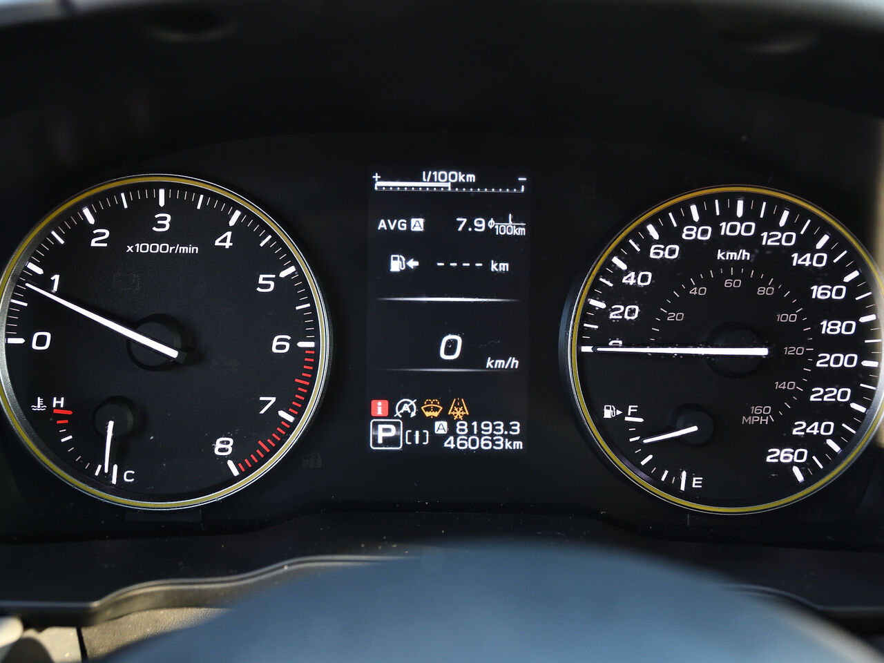 Instruments -comprend : indicateur de vitesse, odomètre, température du liquide de refroidissement du moteur, tachymètre, compteur journalier et ordinateur de voyage