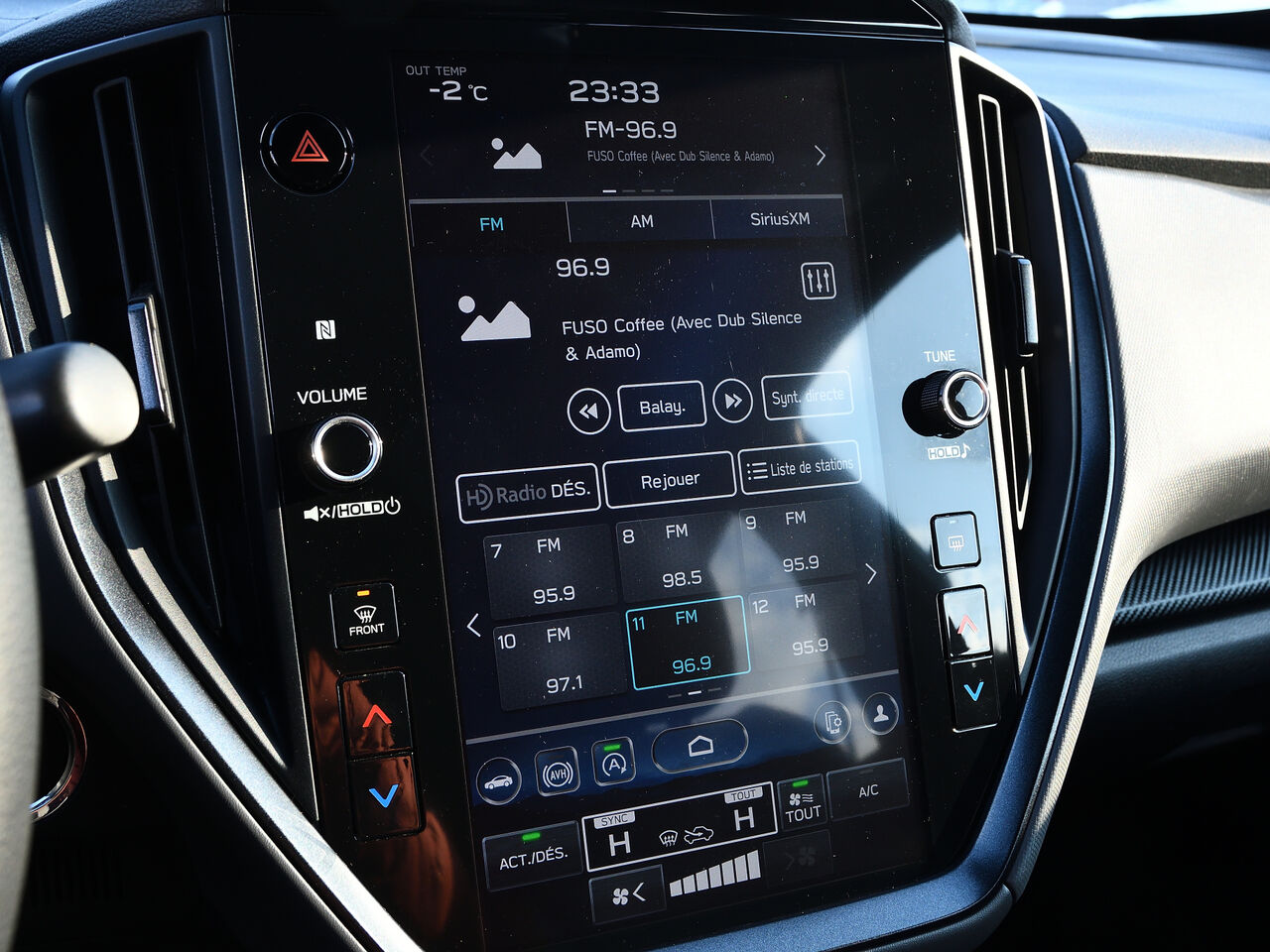 Radio avec recherche et balayage, montre, volume asservi à la vitesse et commandes vocales