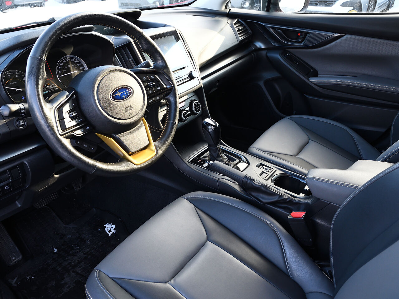 L'intérieur est conçu pour le confort et la commodité, avec des sièges en similicuir, un volant chauffant en cuir/métallique, et un système de climatisation automatique. La connectivité sans fil pour téléphone et les services connectés Subaru STARLINK ajoutent une touche de modernité à votre quotidien.