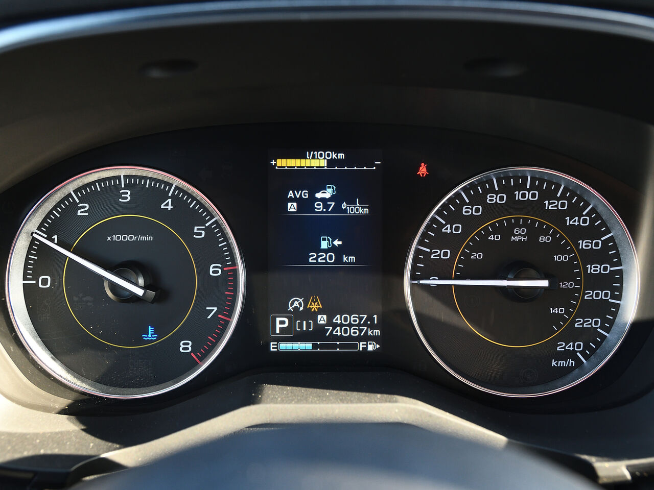 instruments -comprend : indicateur de vitesse, odomètre, température du liquide de refroidissement du moteur, tachymètre, inclinomètre, compteur journalier et ordinateur de voyage
