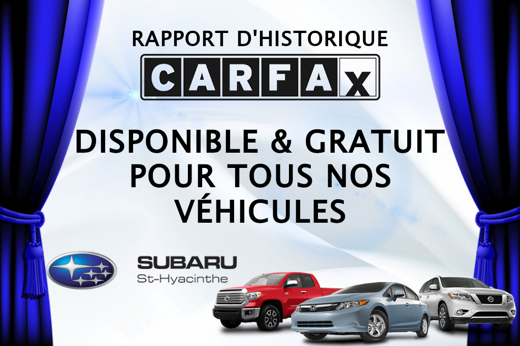 Ne manquez pas cette opportunité de conduire un véhicule exceptionnel. Venez nous rendre visite chez Subaru St-Hyacinthe au 2855 Rue Picard, Saint-Hyacinthe, QC, ou appelez-nous au 450-773-5262 pour plus d'informations!