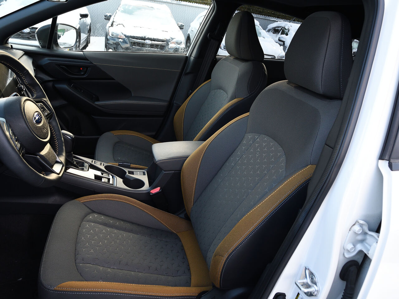 L'intérieur est à la fois pratique et élégant, avec des sièges en tissu de qualité supérieure dotés de piqûres jaunes. Le toit ouvrant ajoute une touche de luxe, vous permettant de profiter de la lumière naturelle. La connectivité sans fil pour téléphone et les services connectés Subaru STARLINK vous gardent connecté en tout temps.