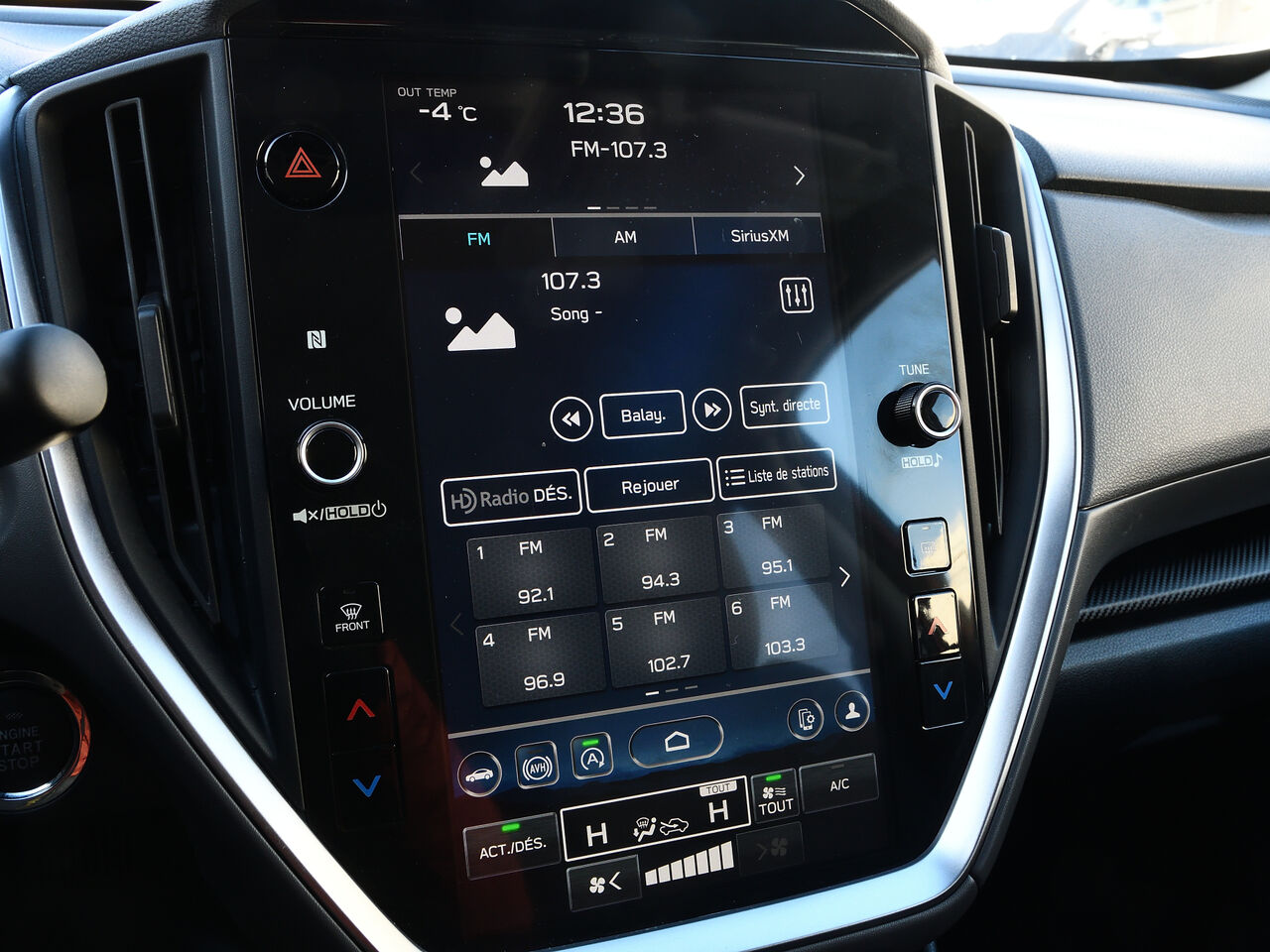 services connectés subaru starlink -comprend : abonnement d'essai gratuit de 3 ans, système automatique avancé de notification de collision, assistance routière améliorée, service d'assistance en cas d'urgence (sos), gestion améliorée des rendez-vous d'entretien, service de concierge, localisation et antidémarreur de véhicule volé, notifications du système d'alarme antivol, alerte de territoire, alerte de couvre-feu, alerte de vitesse, bilan de santé du véhicule, activation à distance du klaxon et des phares, verrouillage et déverrouillage des portes à distance, démarrage et arrêt du véhicule à distance, localisation du véhicule à distance, mises à jour sans fil du micrologiciel du bloc d'instruments et déverrouillage du hayon à distance