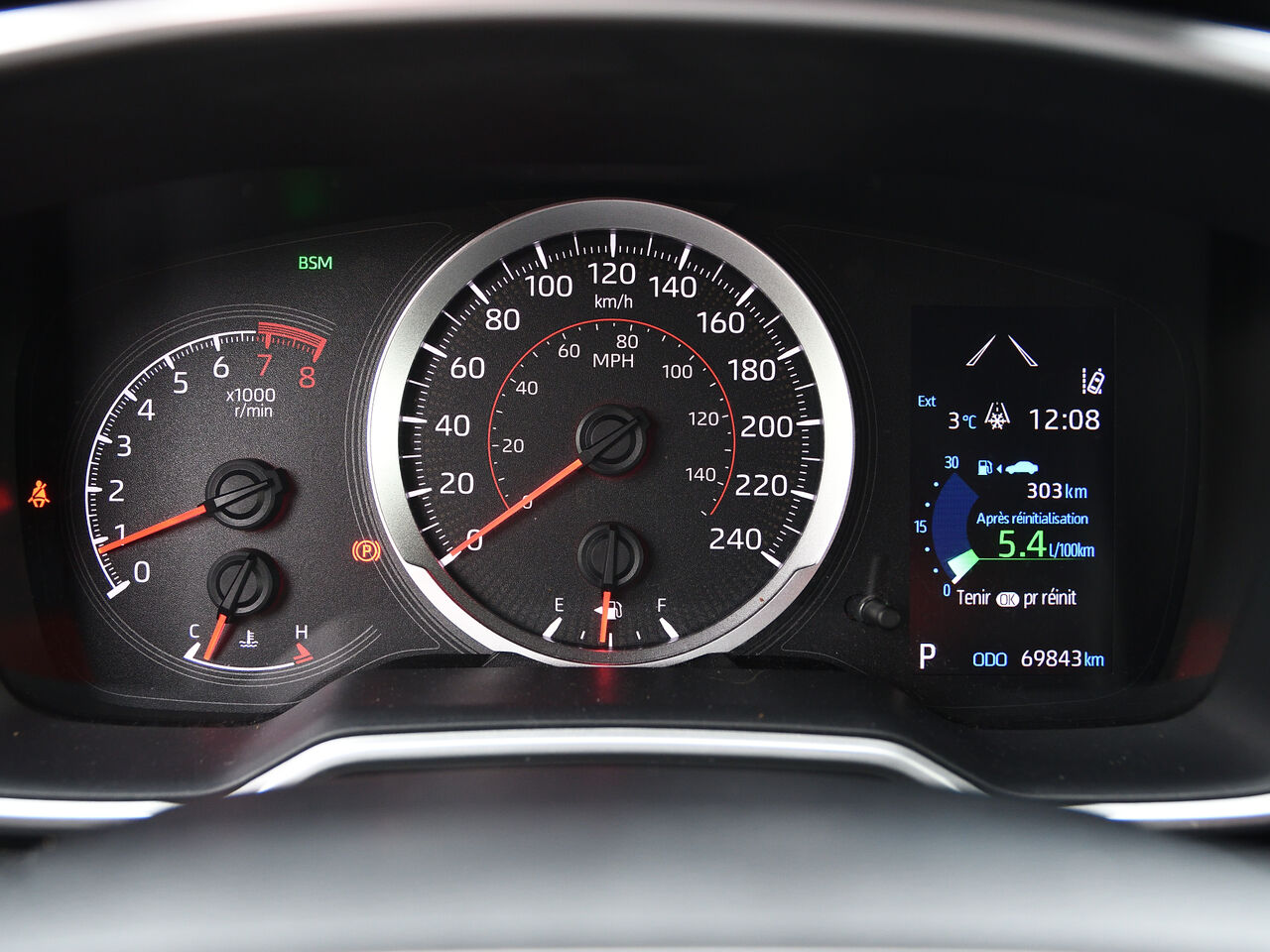 instruments -comprend : indicateur de vitesse, odomètre, température du liquide de refroidissement du moteur, tachymètre, compteur journalier et ordinateur de voyage